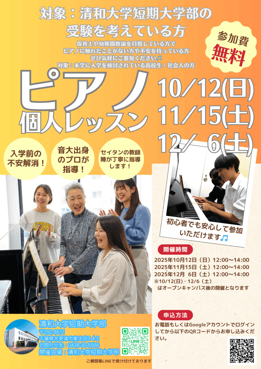 清和大学短期大学部で開催します。1日だけでも両日参加でもOKです!