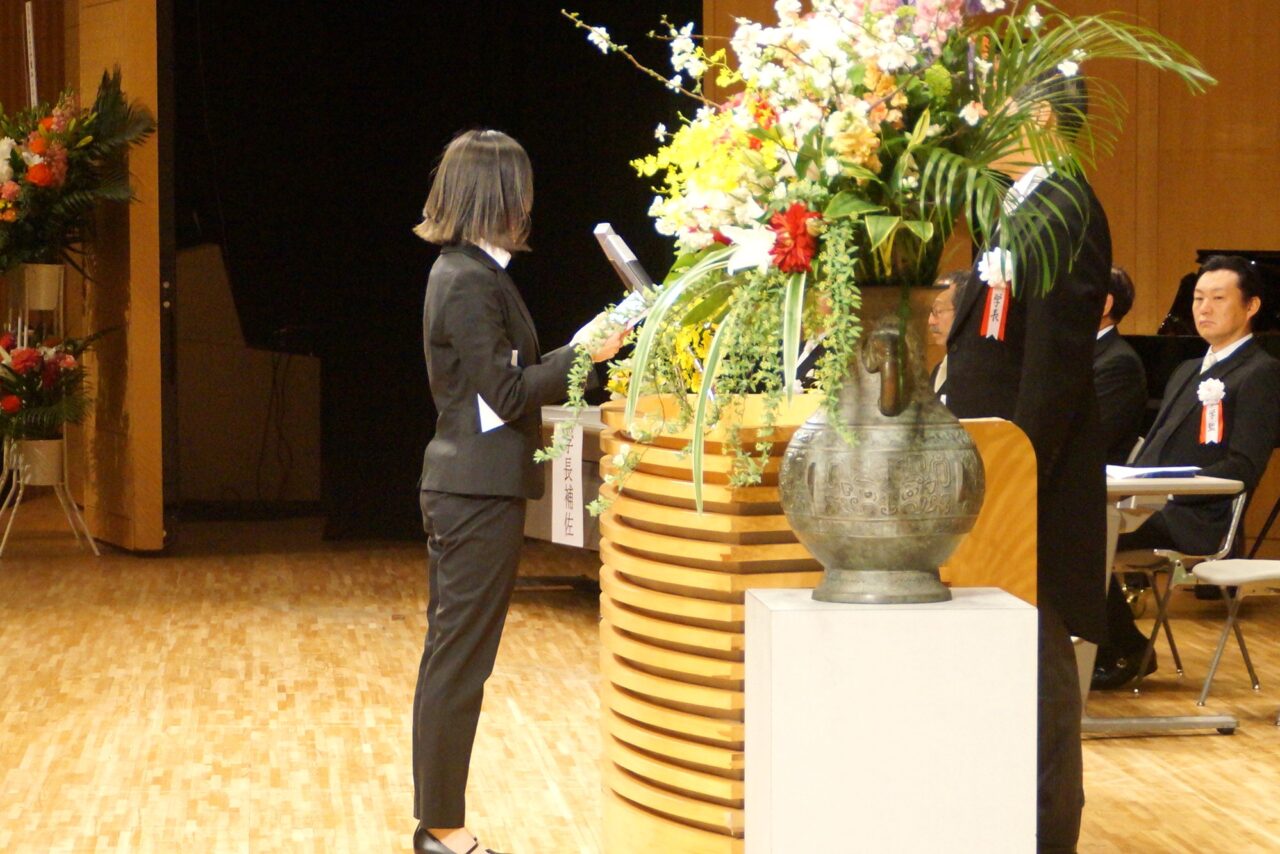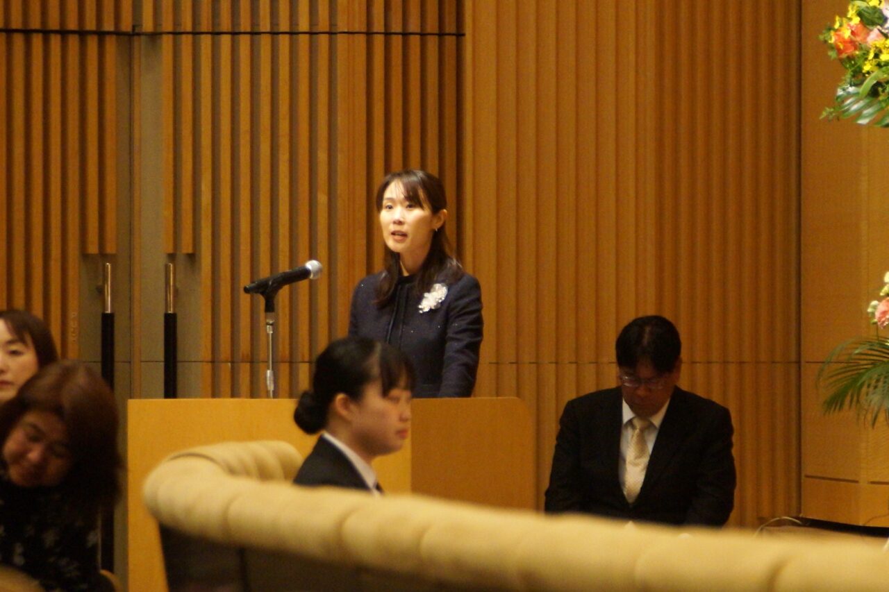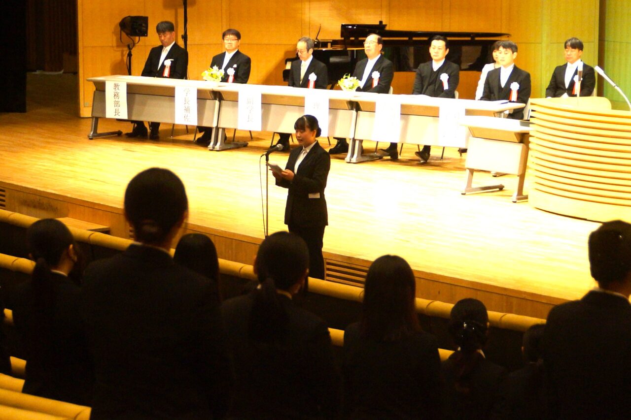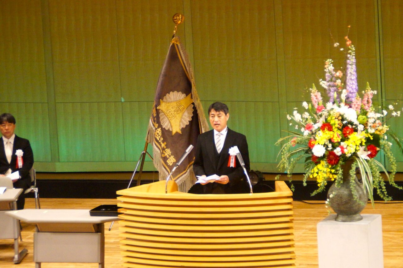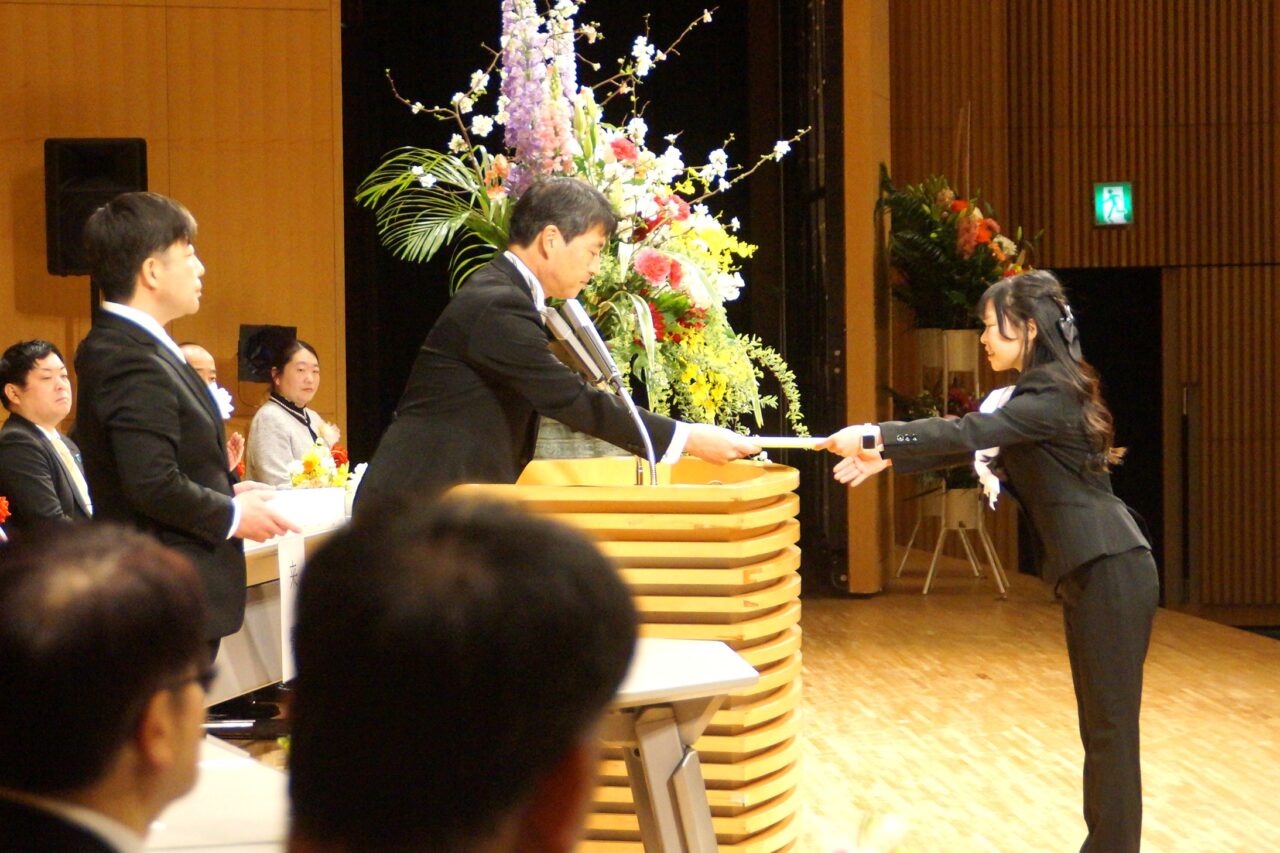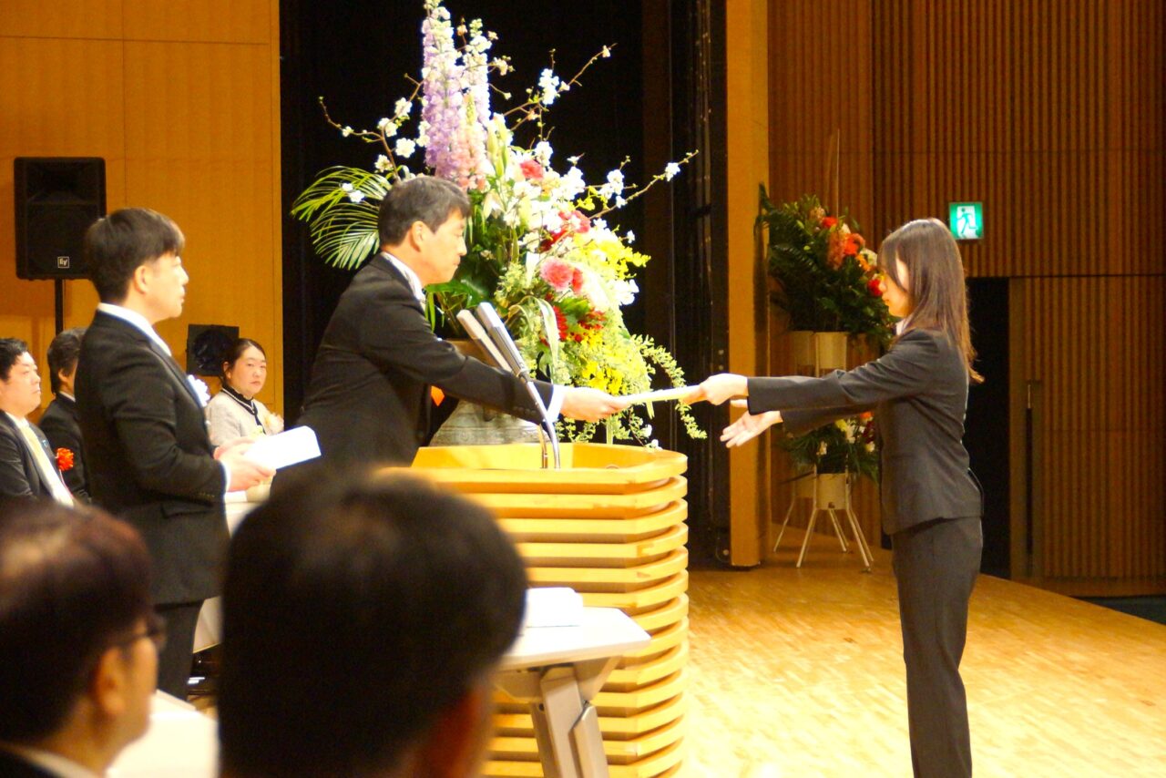 真板学長から式辞が述べられ、来賓代表して石井君津市長からの祝辞を頂きました。その後、在校生代表からの送辞があり、卒業生代表が謝辞を述べて式典は終了しました。