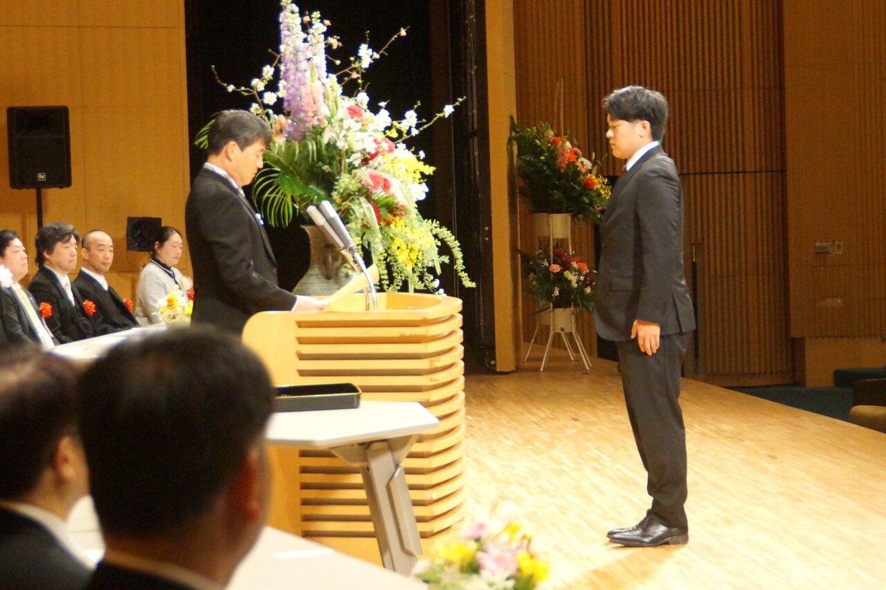 卒業証書学位記授与では、中島准教授が卒業生一人ひとりを呼名し、代表者が卒業証書を授与しました。