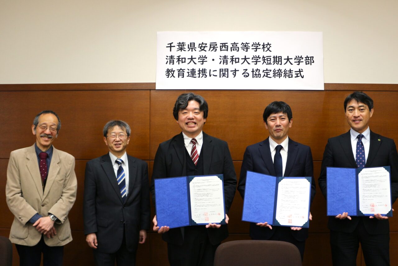 清和大学・清和大学短期大学部(千葉県木更津市)は、千葉県安房西高等学校(千葉県館山市)との間で、教育内容の充実と学生・生徒の資質向上を目的とした教育連携協定を締結いたしました。